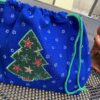 Blaudruck – Geschenkbeutel mit appliziertem Tannenbaum, in Handarbeit gefertigt. Das Motiv befindet sich nur auf der Vorderseite. Ca-Maße: Länge 22 cm, Breite 11 cm und Höhe 16 cm. Der Boden des Beutels ist ca. 11 x 22 cm, nach oben schmaler zulaufend. Die Öffnung oben ist 24 cm. Verschlossen wird der Beutel mit einer farblich passenden Kordel zum Zuziehen. Das Täschchen ist innen aus dem gleichen Blaudruckstoff gefüttert, wie die Vorderseite, deshalb kann man es auch umkrempeln.