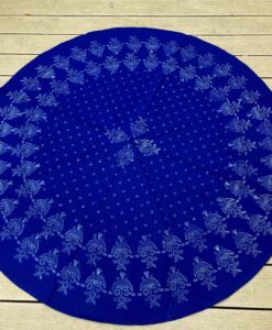 Die Tischdecke ist 1,45 m rund. Super passend für einen Tisch in der Größe von 1,00 – 1,10m Durchmesser. Die Decke ist rundherum gesäumt.